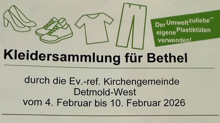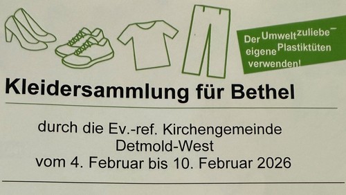 In der Zeit vom 04.02. - 10.02.2026 sammeln wir Kleiderspenden für Bethel.